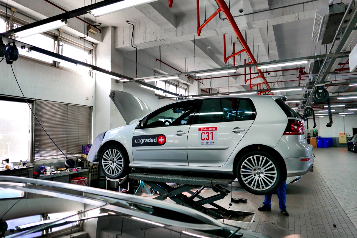購入後,經由鉅賦福斯原廠技師檢修後,將車況恢復至正常狀態,此時車主作了一個決定,他希望帶原廠未改 R32 挑戰麗寶賽車場,看看原廠狀況下的 R32 能有什麼樣的能耐以及可以升級改善之處。