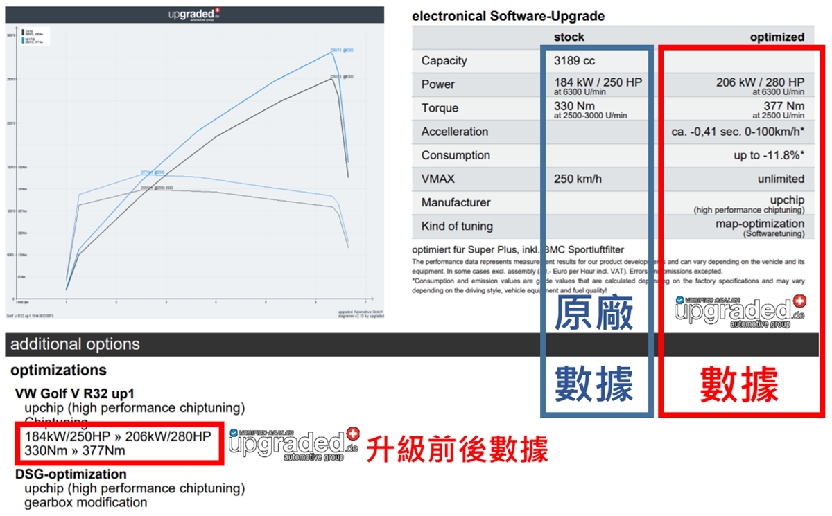 Q. UPGRADED後的R32跟原廠R32在麗寶的差異呢?